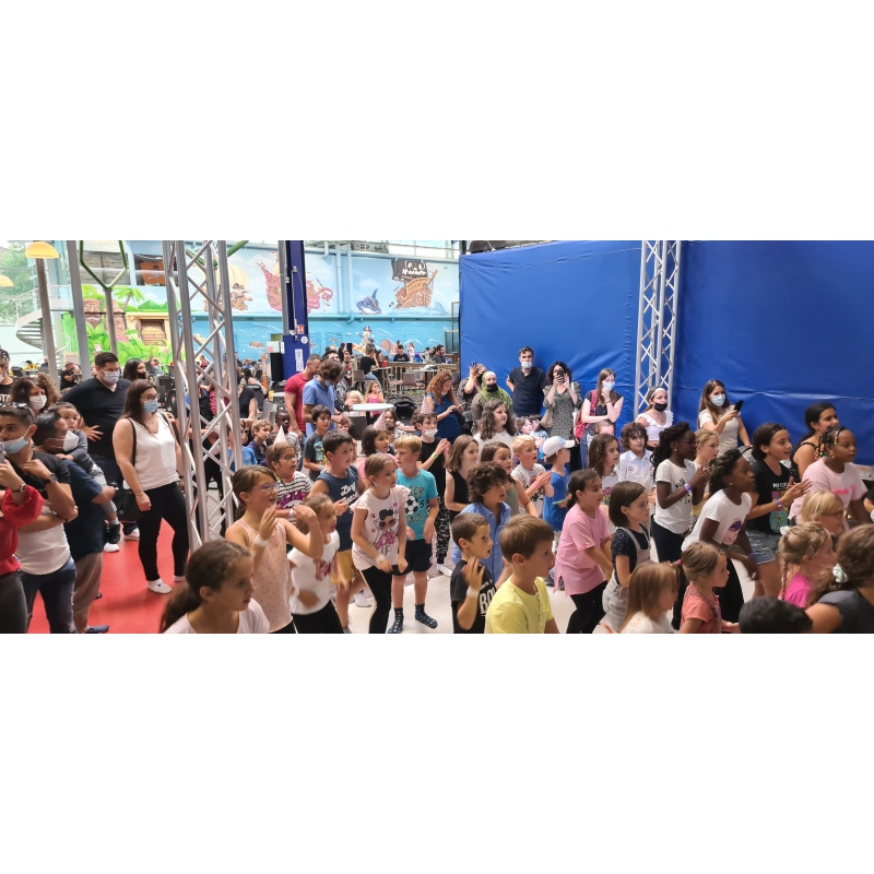 L'artiste participe à l'animation "Danse" organisée plusieurs fois dans la journée, il déambule autour des structures et anime le centre le temps d'un après midi.